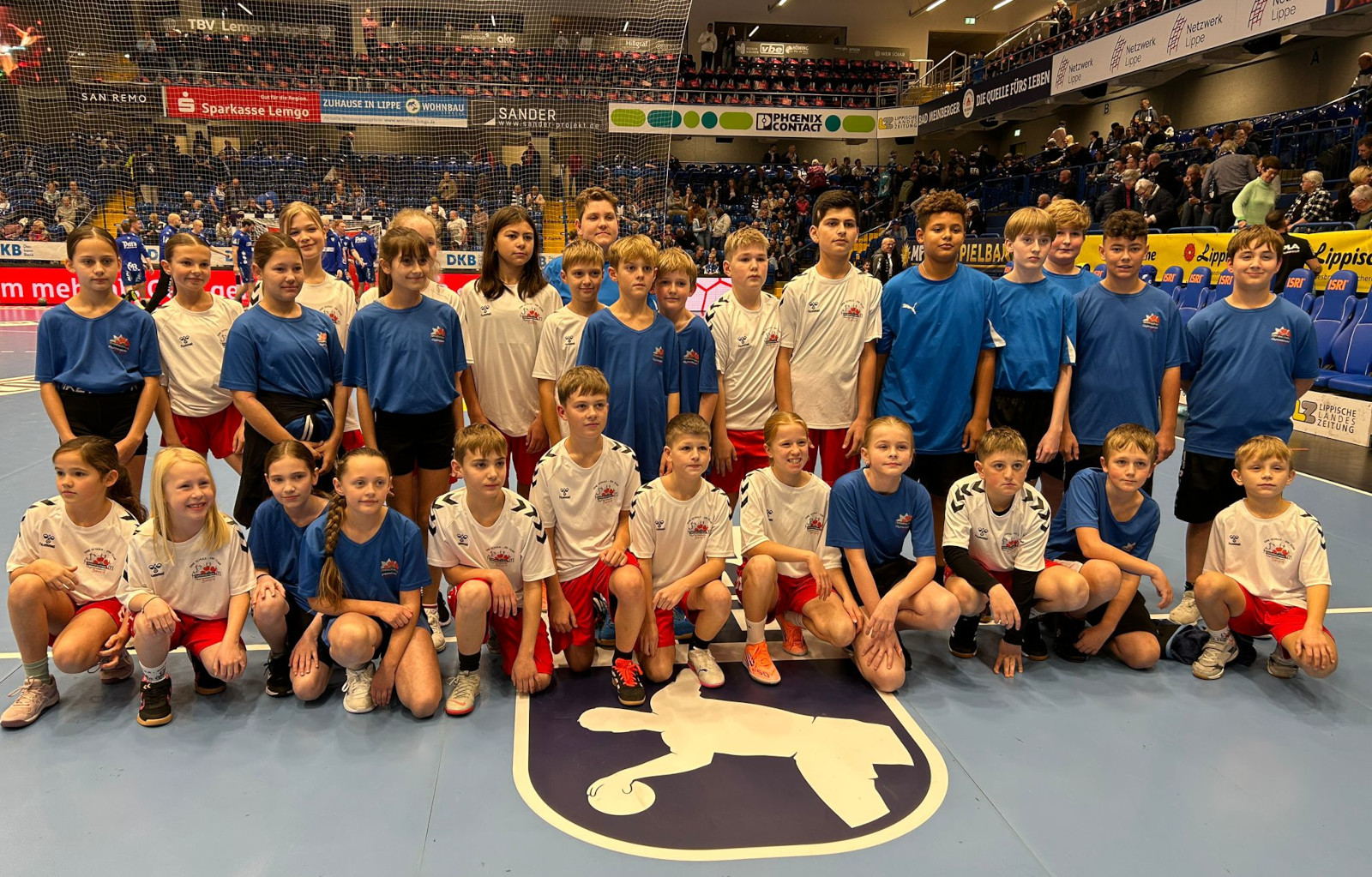 Gemeinsam mit der Ballsport-AG hatten sich Schülerinnen und Schüler unserer 6. Klassen, die aktuell im Sportunterricht das Thema "Handball" behandeln, auf den Weg in die Phoenix Contact Arena gemacht. Aber nicht einfach nur, um erstklassigen Handball zu sehen! Denn das Highlight kam gleich zu Beginn: Alle Kinder durften als Einlaufkinder gemeinsam mit den Profis auf das Spielfeld laufen. Die Aufregung und Spannung war riesig – ein einmaliges Erlebnis, an das sie sich noch lange erinnern werden.