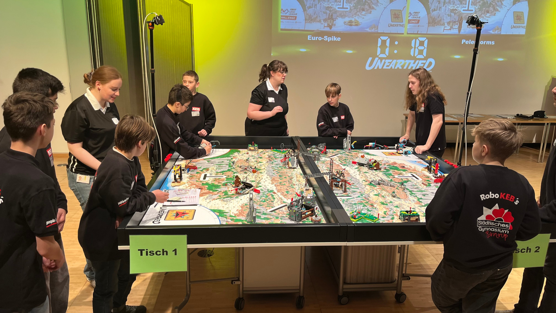 Die 13 Jungs stellten sich dort spannenden Herausforderungen des Unearthed Robo-Game. Ein Spielfeld mit Ausgrabungsstätten und Artefakten die mit Roboter entdeckt, ausgegraben oder gesichert werden müssen. In einem starken Teilnehmerfeld erreichten unsere Teams einen tollen 6. und 13. Platz.