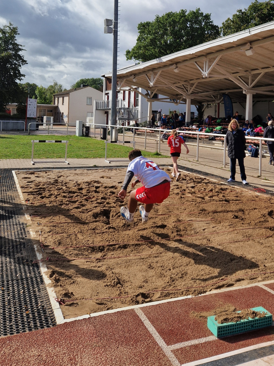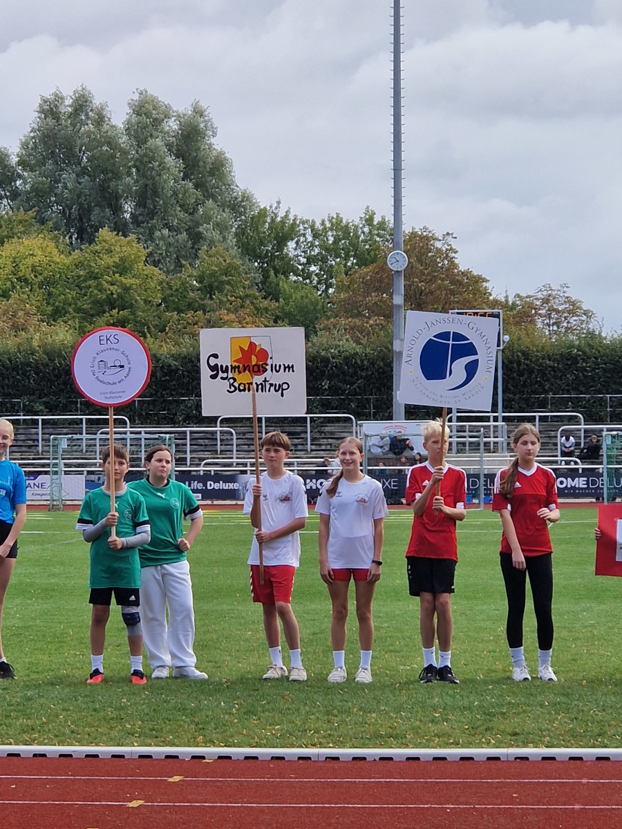 Unsere Mannschaft zeigte dabei tolle Leistungen: Besonders in den Wurfdisziplinen konnten wir glänzen, im Weitsprung gab es kleinere Schwächen, die durch konstante und solide Ergebnisse in den übrigen Disziplinen wieder ausgeglichen wurden. Am Ende erreichten unsere Schülerinnen und Schüler einen hervorragenden 4. Platz in Westfalen.