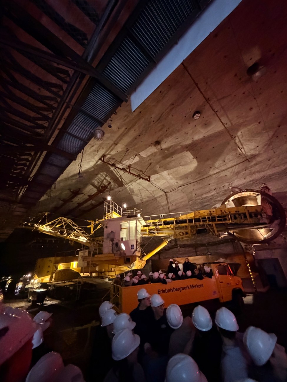 Das in Teilen stillgelegte Salzbergwerk im thüringischen Merkers mit einer Flächenausdehnung, die derjenigen der Stadt München entspricht, bietet eine sehenswerte etwa dreistündige Führung durch die örtliche Geologie auf verschiedenen Solen, auf denen Salz gewonnen wurde, an, wobei auch der Bergmannshumor nicht zu kurz kommt. Die Exkursionsgruppe um Herrn Grohn, Herrn Bartel und Herrn Graumann fuhr untertage zwischen mehreren Stationen ca. 20 km auf LKW durch das Bergwerk und durfte dabei u.a.