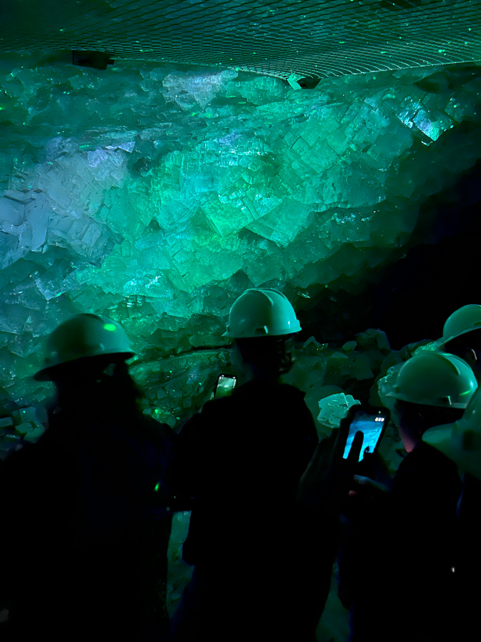 - die Salzkristallgrotte mit den größten entdeckten Salzkristallen der Welt (1 m Kantenlänge!) in über 800 m Tiefe bestaunen,